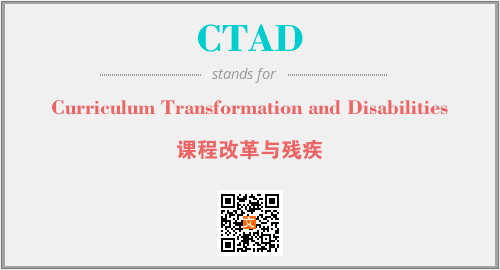 以上为Curriculum Transformation and Disabilities英文缩略词CTAD的中文解释,以及该英文缩写在英语的流行度、分类和应用领域方面的信息。