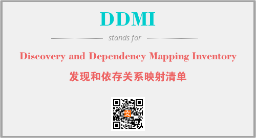 上述内容是“Discovery and Dependency Mapping Inventory”作为“DDMI”的缩写,解释为“发现和依存关系映射清单”时的信息,以及英文缩略词DDMI所代表的英文单词,其对应的中文拼音、详细解释以及在英文中的流行度和相关分类、应用领域及应用示例等。