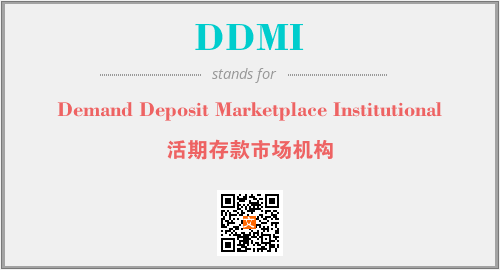 上述内容是“Demand Deposit Marketplace Institutional”作为“DDMI”的缩写,解释为“活期存款市场机构”时的信息,以及英文缩略词DDMI所代表的英文单词,其对应的中文拼音、详细解释以及在英文中的流行度和相关分类、应用领域及应用示例等。