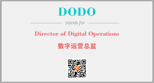 上述内容是“Director of Digital Operations”作为“DODO”的缩写,解释为“数字运营总监”时的信息,以及英文缩略词DODO所代表的英文单词,其对应的中文拼音、详细解释以及在英文中的流行度和相关分类、应用领域及应用示例等。