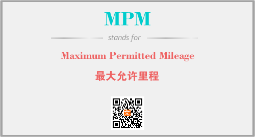 上述内容是“Maximum Permitted Mileage”作为“MPM”的缩写,解释为“最大允许里程”时的信息,以及英文缩略词MPM所代表的英文单词,其对应的中文拼音、详细解释以及在英文中的流行度和相关分类、应用领域及应用示例等。