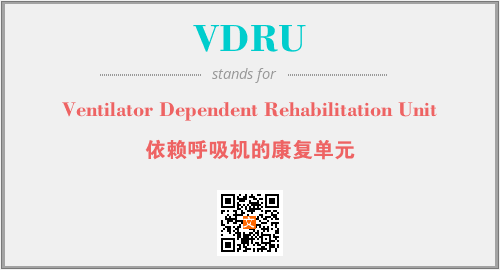 上述内容是“Ventilator Dependent Rehabilitation Unit”作为“VDRU”的缩写,解释为“依赖呼吸机的康复单元”时的信息,以及英文缩略词VDRU所代表的英文单词,其对应的中文拼音、详细解释以及在英文中的流行度和相关分类、应用领域及应用示例等。