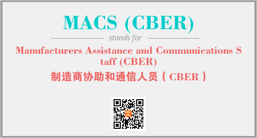 上述内容是“Manufacturers Assistance and Communications Staff (CBER)”作为“MACS (CBER)”的缩写,解释为“制造商协助和通信人员(CBER)”时的信息,以及英文缩略词MACS (CBER)所代表的英文单词,其对应的中文拼音、详细解释以及在英文中的流行度和相关分类、应用领域及应用示例等。