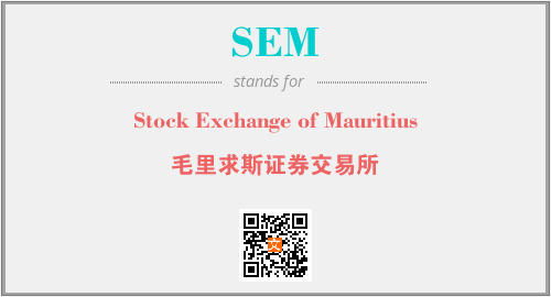 上述内容是“Stock Exchange of Mauritius”作为“SEM”的缩写,解释为“毛里求斯证券交易所”时的信息,以及英文缩略词SEM所代表的英文单词,其对应的中文拼音、详细解释以及在英文中的流行度和相关分类、应用领域及应用示例等。