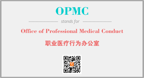 上述内容是“Office of Professional Medical Conduct”作为“OPMC”的缩写,解释为“职业医疗行为办公室”时的信息,以及英文缩略词OPMC所代表的英文单词,其对应的中文拼音、详细解释以及在英文中的流行度和相关分类、应用领域及应用示例等。
