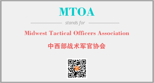 上述内容是“Midwest Tactical Officers Association”作为“MTOA”的缩写,解释为“中西部战术军官协会”时的信息,以及英文缩略词MTOA所代表的英文单词,其对应的中文拼音、详细解释以及在英文中的流行度和相关分类、应用领域及应用示例等。