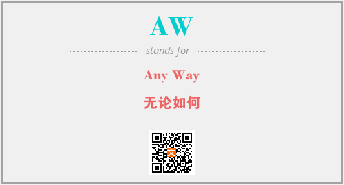 英文缩略词“AW”经常作为“Any Way”的英文缩写来使用,中文表示:“无论如何”。本文将详细介绍英文缩写词AW所代表英文单词,其对应的中文拼音、详细解释以及在英语中的流行度。此外,还有关于缩略词AW的分类、应用领域及相关应用示例等。