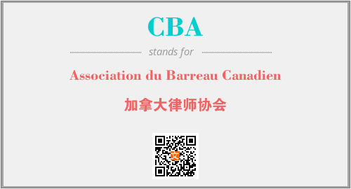 上述内容是“Association du Barreau Canadien”作为“CBA”的缩写,解释为“加拿大律师协会”时的信息,以及英文缩略词CBA所代表的英文单词,其对应的中文拼音、详细解释以及在英文中的流行度和相关分类、应用领域及应用示例等。