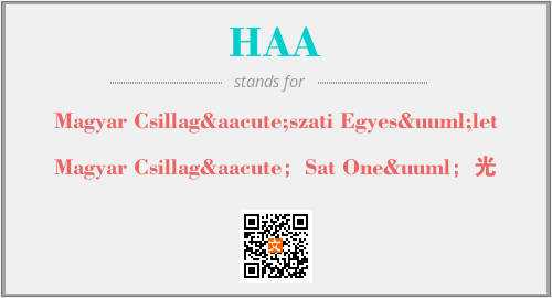 上述内容是“Magyar Csillagászati Egyesület”作为“HAA”的缩写,解释为“Magyar Csillagá;Sat Oneü;光”时的信息,以及英文缩略词HAA所代表的英文单词,其对应的中文拼音、详细解释以及在英文中的流行度和相关分类、应用领域及应用示例等。