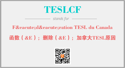 上述内容是“Fédération TESL du Canada”作为“TESLCF”的缩写,解释为“函数(&E);删除(&E);加拿大TESL原因”时的信息,以及英文缩略词TESLCF所代表的英文单词,其对应的中文拼音、详细解释以及在英文中的流行度和相关分类、应用领域及应用示例等。