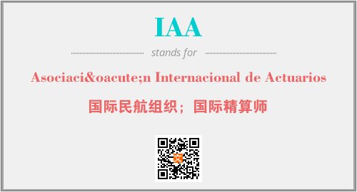上述内容是“Asociación Internacional de Actuarios”作为“IAA”的缩写,解释为“国际民航组织;国际精算师”时的信息,以及英文缩略词IAA所代表的英文单词,其对应的中文拼音、详细解释以及在英文中的流行度和相关分类、应用领域及应用示例等。