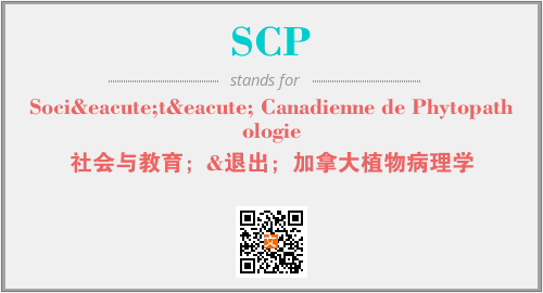上述内容是“Société Canadienne de Phytopathologie”作为“SCP”的缩写,解释为“社会与教育;&退出;加拿大植物病理学”时的信息,以及英文缩略词SCP所代表的英文单词,其对应的中文拼音、详细解释以及在英文中的流行度和相关分类、应用领域及应用示例等。