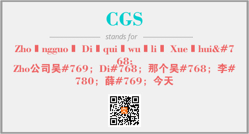 上述内容是“Zhōngguó Dìquíwùlǐ Xuéhuì”作为“CGS”的缩写,解释为“Zho公司吴#769;Di#768;那个吴#768;李#780;薛#769;今天”时的信息,以及英文缩略词CGS所代表的英文单词,其对应的中文拼音、详细解释以及在英文中的流行度和相关分类、应用领域及应用示例等。