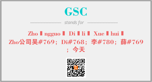 上述内容是“Zhōngguó Dìlǐ Xuéhuì”作为“GSC”的缩写,解释为“Zho公司吴#769;Di#768;李#780;薛#769;今天”时的信息,以及英文缩略词GSC所代表的英文单词,其对应的中文拼音、详细解释以及在英文中的流行度和相关分类、应用领域及应用示例等。