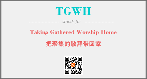 英文缩略词“TGWH”经常作为“Taking Gathered Worship Home”的英文缩写来使用,中文表示:“把聚集的敬拜带回家”。本文将详细介绍英文缩写词TGWH所代表英文单词,其对应的中文拼音、详细解释以及在英语中的流行度。此外,还有关于缩略词TGWH的分类、应用领域及相关应用示例等。