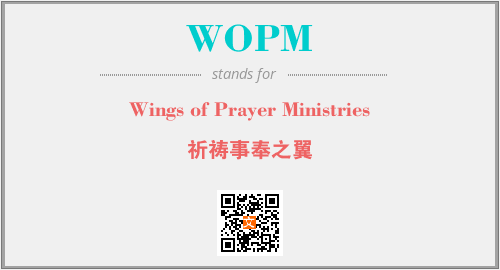 英文缩略词“WOPM”经常作为“Wings of Prayer Ministries”的英文缩写来使用,中文表示:“祈祷事奉之翼”。本文将详细介绍英文缩写词WOPM所代表英文单词,其对应的中文拼音、详细解释以及在英语中的流行度。此外,还有关于缩略词WOPM的分类、应用领域及相关应用示例等。