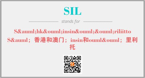 上述内容是“Sähköinsinööriliitto”作为“SIL”的缩写,解释为“Sä;香港和澳门;insin和oumlö;里利托”时的信息,以及英文缩略词SIL所代表的英文单词,其对应的中文拼音、详细解释以及在英文中的流行度和相关分类、应用领域及应用示例等。
