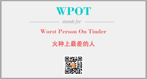 上述内容是“Worst Person On Tinder”作为“WPOT”的缩写,解释为“火种上最差的人”时的信息,以及英文缩略词WPOT所代表的英文单词,其对应的中文拼音、详细解释以及在英文中的流行度和相关分类、应用领域及应用示例等。