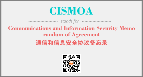 上述内容是“Communications and Information Security Memorandum of Agreement”作为“CISMOA”的缩写,解释为“通信和信息安全协议备忘录”时的信息,以及英文缩略词CISMOA所代表的英文单词,其对应的中文拼音、详细解释以及在英文中的流行度和相关分类、应用领域及应用示例等。