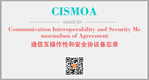 上述内容是“Communication Interoperability and Security Memorandum of Agreement”作为“CISMOA”的缩写,解释为“通信互操作性和安全协议备忘录”时的信息,以及英文缩略词CISMOA所代表的英文单词,其对应的中文拼音、详细解释以及在英文中的流行度和相关分类、应用领域及应用示例等。