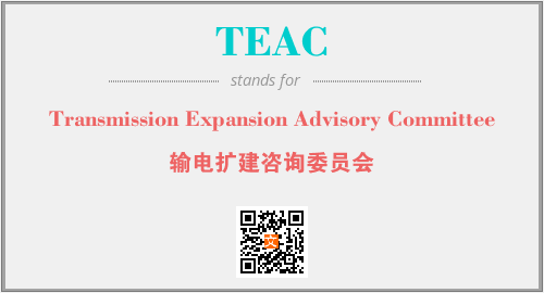英文缩略词“TEAC”经常作为“Transmission Expansion Advisory Committee”的英文缩写来使用,中文表示:“输电扩建咨询委员会”。本文将详细介绍英文缩写词TEAC所代表英文单词,其对应的中文拼音、详细解释以及在英语中的流行度。此外,还有关于缩略词TEAC的分类、应用领域及相关应用示例等。