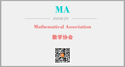 英文缩略词“MA”经常作为“Mathematical Association”的英文缩写来使用,中文表示:“数学协会”。本文将详细介绍英文缩写词MA所代表英文单词,其对应的中文拼音、详细解释以及在英语中的流行度。此外,还有关于缩略词MA的分类、应用领域及相关应用示例等。