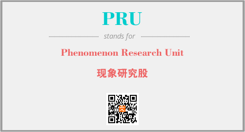 上述内容是“Phenomenon Research Unit”作为“PRU”的缩写,解释为“现象研究股”时的信息,以及英文缩略词PRU所代表的英文单词,其对应的中文拼音、详细解释以及在英文中的流行度和相关分类、应用领域及应用示例等。