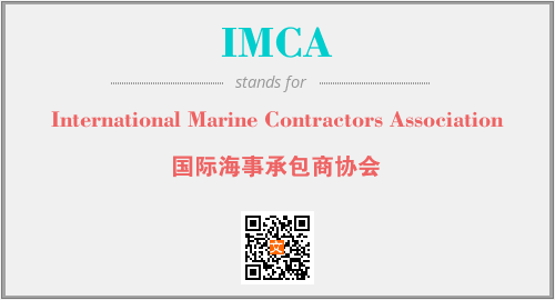 英文缩略词“IMCA”经常作为“International Marine Contractors Association”的英文缩写来使用,中文表示:“国际海事承包商协会”。本文将详细介绍英文缩写词IMCA所代表英文单词,其对应的中文拼音、详细解释以及在英语中的流行度。此外,还有关于缩略词IMCA的分类、应用领域及相关应用示例等。