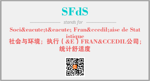上述内容是“Société Française de Statistique”作为“SFdS”的缩写,解释为“社会与环境;执行(&E)FRAN&CCEDIL公司;统计舒适度”时的信息,以及英文缩略词SFdS所代表的英文单词,其对应的中文拼音、详细解释以及在英文中的流行度和相关分类、应用领域及应用示例等。