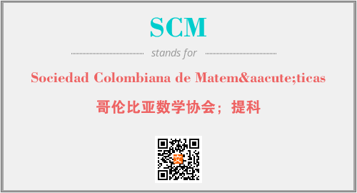 上述内容是“Sociedad Colombiana de Matemáticas”作为“SCM”的缩写,解释为“哥伦比亚数学协会;提科”时的信息,以及英文缩略词SCM所代表的英文单词,其对应的中文拼音、详细解释以及在英文中的流行度和相关分类、应用领域及应用示例等。