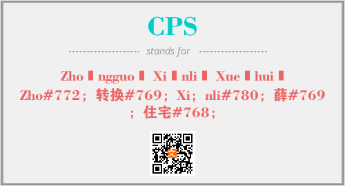 上述内容是“Zhōngguó Xīnlǐ Xuéhuì”作为“CPS”的缩写,解释为“Zho#772;转换#769;Xi;nli#780;薛#769;住宅#768;”时的信息,以及英文缩略词CPS所代表的英文单词,其对应的中文拼音、详细解释以及在英文中的流行度和相关分类、应用领域及应用示例等。