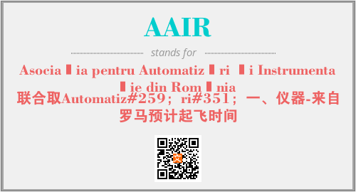 上述内容是“Asociaţia pentru Automatizări şi Instrumentaţie din România”作为“AAIR”的缩写,解释为“联合取Automatiz#259;ri#351;一、仪器-来自罗马预计起飞时间”时的信息,以及英文缩略词AAIR所代表的英文单词,其对应的中文拼音、详细解释以及在英文中的流行度和相关分类、应用领域及应用示例等。