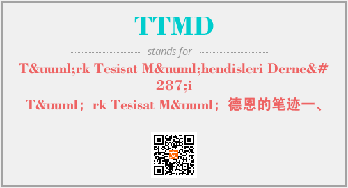 上述内容是“Türk Tesisat Mühendisleri Derneği”作为“TTMD”的缩写,解释为“Tü;rk Tesisat Mü;德恩的笔迹一、”时的信息,以及英文缩略词TTMD所代表的英文单词,其对应的中文拼音、详细解释以及在英文中的流行度和相关分类、应用领域及应用示例等。