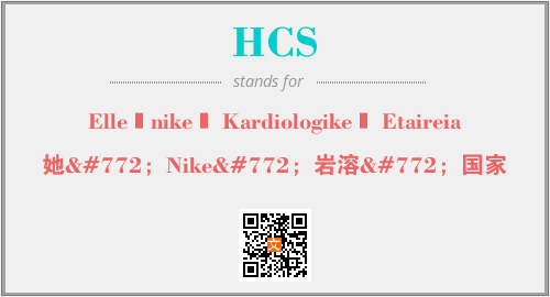 上述内容是“Ellēnikē Kardiologikē Etaireia”作为“HCS”的缩写,解释为“她̄;Nikē;岩溶̄;国家”时的信息,以及英文缩略词HCS所代表的英文单词,其对应的中文拼音、详细解释以及在英文中的流行度和相关分类、应用领域及应用示例等。