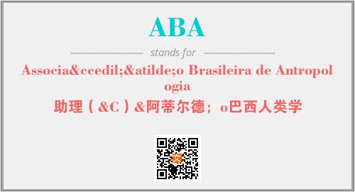 英文缩略词“ABA”经常作为“Associação Brasileira de Antropologia”的英文缩写来使用,中文表示:“助理(&C)&阿蒂尔德;o巴西人类学”。本文将详细介绍英文缩写词ABA所代表英文单词,其对应的中文拼音、详细解释以及在英语中的流行度。此外,还有关于缩略词ABA的分类、应用领域及相关应用示例等。