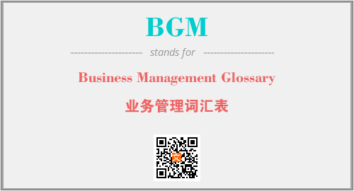 上述内容是“Business Management Glossary”作为“BGM”的缩写,解释为“业务管理词汇表”时的信息,以及英文缩略词BGM所代表的英文单词,其对应的中文拼音、详细解释以及在英文中的流行度和相关分类、应用领域及应用示例等。