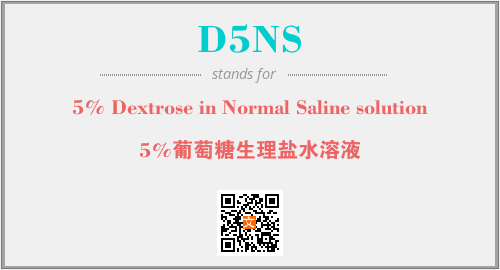 英文缩略词“D5NS”经常作为“5% Dextrose in Normal Saline solution”的英文缩写来使用,中文表示:“5%葡萄糖生理盐水溶液”。本文将详细介绍英文缩写词D5NS所代表英文单词,其对应的中文拼音、详细解释以及在英语中的流行度。此外,还有关于缩略词D5NS的分类、应用领域及相关应用示例等。