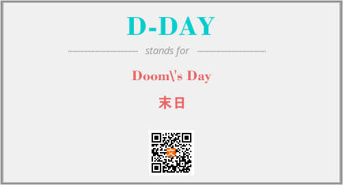 英文缩略词“D-DAY”经常作为“Doom\'s Day”的英文缩写来使用,中文表示:“末日”。本文将详细介绍英文缩写词D-DAY所代表英文单词,其对应的中文拼音、详细解释以及在英语中的流行度。此外,还有关于缩略词D-DAY的分类、应用领域及相关应用示例等。