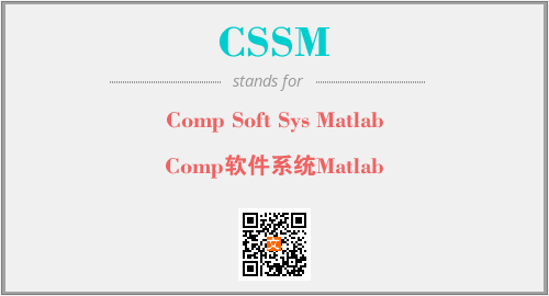 上述内容是“Comp Soft Sys Matlab”作为“CSSM”的缩写,解释为“Comp软件系统Matlab”时的信息,以及英文缩略词CSSM所代表的英文单词,其对应的中文拼音、详细解释以及在英文中的流行度和相关分类、应用领域及应用示例等。