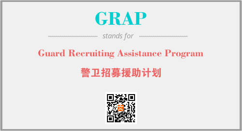 英文缩略词“GRAP”经常作为“Guard Recruiting Assistance Program”的英文缩写来使用,中文表示:“警卫招募援助计划”。本文将详细介绍英文缩写词GRAP所代表英文单词,其对应的中文拼音、详细解释以及在英语中的流行度。此外,还有关于缩略词GRAP的分类、应用领域及相关应用示例等。