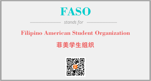 英文缩略词“FASO”经常作为“Filipino American Student Organization”的英文缩写来使用,中文表示:“菲美学生组织”。本文将详细介绍英文缩写词FASO所代表英文单词,其对应的中文拼音、详细解释以及在英语中的流行度。此外,还有关于缩略词FASO的分类、应用领域及相关应用示例等。