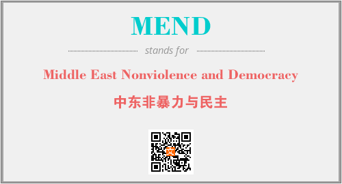 上述内容是“Middle East Nonviolence and Democracy”作为“MEND”的缩写,解释为“中东非暴力与民主”时的信息,以及英文缩略词MEND所代表的英文单词,其对应的中文拼音、详细解释以及在英文中的流行度和相关分类、应用领域及应用示例等。
