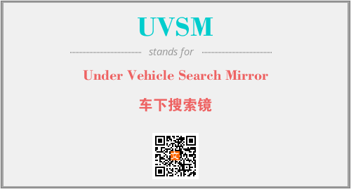 英文缩略词“UVSM”经常作为“Under Vehicle Search Mirror”的英文缩写来使用,中文表示:“车下搜索镜”。本文将详细介绍英文缩写词UVSM所代表英文单词,其对应的中文拼音、详细解释以及在英语中的流行度。此外,还有关于缩略词UVSM的分类、应用领域及相关应用示例等。