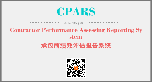 英文缩略词“CPARS”经常作为“Contractor Performance Assessing Reporting System”的英文缩写来使用,中文表示:“承包商绩效评估报告系统”。本文将详细介绍英文缩写词CPARS所代表英文单词,其对应的中文拼音、详细解释以及在英语中的流行度。此外,还有关于缩略词CPARS的分类、应用领域及相关应用示例等。