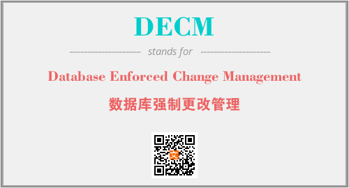 英文缩略词“DECM”经常作为“Database Enforced Change Management”的英文缩写来使用,中文表示:“数据库强制更改管理”。本文将详细介绍英文缩写词DECM所代表英文单词,其对应的中文拼音、详细解释以及在英语中的流行度。此外,还有关于缩略词DECM的分类、应用领域及相关应用示例等。