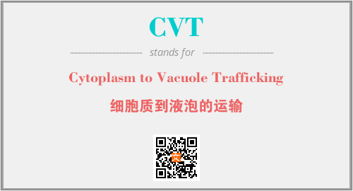 上述内容是“Cytoplasm to Vacuole Trafficking”作为“CVT”的缩写,解释为“细胞质到液泡的运输”时的信息,以及英文缩略词CVT所代表的英文单词,其对应的中文拼音、详细解释以及在英文中的流行度和相关分类、应用领域及应用示例等。