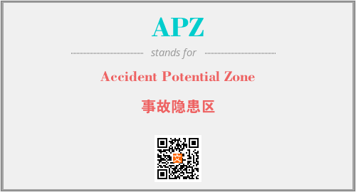 英文缩略词“APZ”经常作为“Accident Potential Zone”的英文缩写来使用,中文表示:“事故隐患区”。本文将详细介绍英文缩写词APZ所代表英文单词,其对应的中文拼音、详细解释以及在英语中的流行度。此外,还有关于缩略词APZ的分类、应用领域及相关应用示例等。