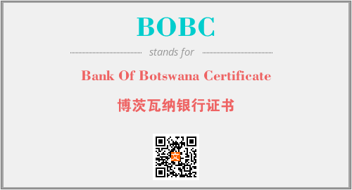 英文缩略词“BOBC”经常作为“Bank Of Botswana Certificate”的英文缩写来使用,中文表示:“博茨瓦纳银行证书”。本文将详细介绍英文缩写词BOBC所代表英文单词,其对应的中文拼音、详细解释以及在英语中的流行度。此外,还有关于缩略词BOBC的分类、应用领域及相关应用示例等。