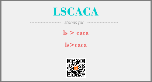 英文缩略词“LSCACA”经常作为“ls > caca”的英文缩写来使用,中文表示:“ls>caca”。本文将详细介绍英文缩写词LSCACA所代表英文单词,其对应的中文拼音、详细解释以及在英语中的流行度。此外,还有关于缩略词LSCACA的分类、应用领域及相关应用示例等。
