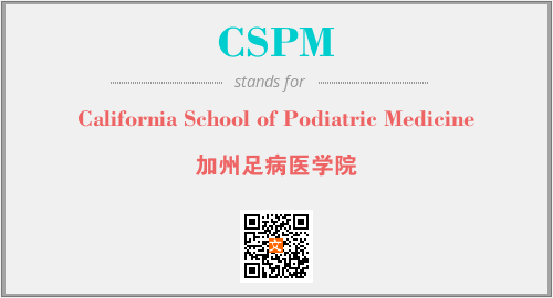 英文缩略词“CSPM”经常作为“California School of Podiatric Medicine”的英文缩写来使用,中文表示:“加州足病医学院”。本文将详细介绍英文缩写词CSPM所代表英文单词,其对应的中文拼音、详细解释以及在英语中的流行度。此外,还有关于缩略词CSPM的分类、应用领域及相关应用示例等。